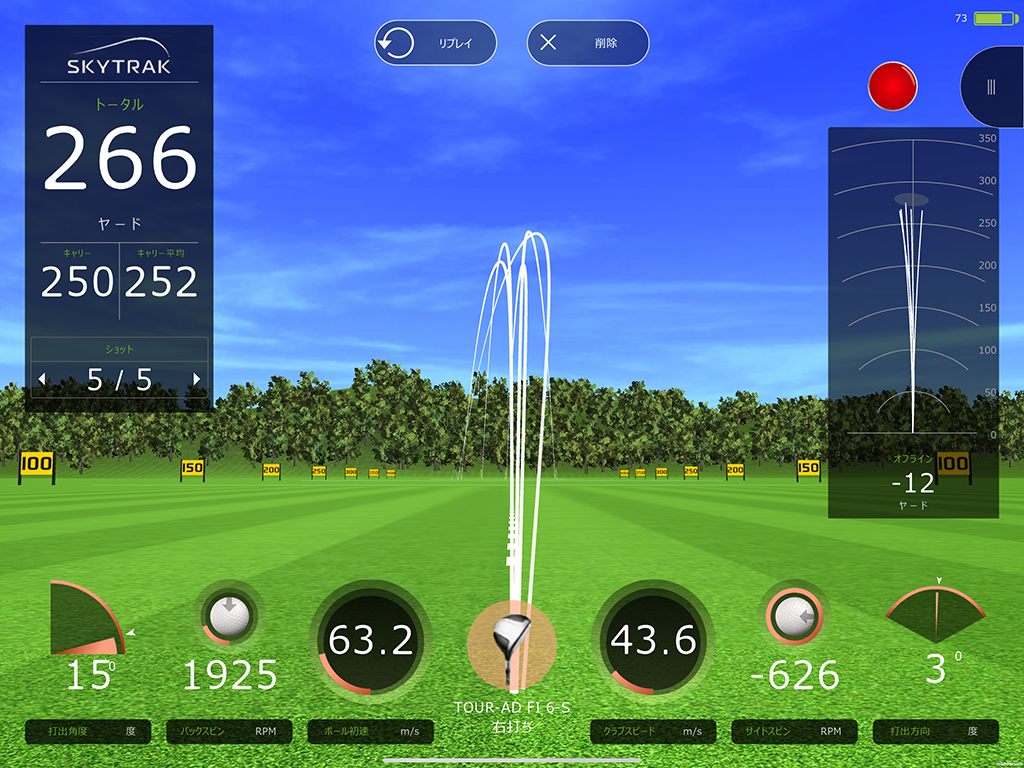 前置きが長くなりましたが、ショットとしては「ちょい遅れ」と、それをカバーしてくれる最後の「押し込み」があるので、左右方向の大きなミスを警戒する必要がないので、ついつい振りたくなってしまうようなシャフトです。結果的に高い打出角、高初速、低スピンになっているので、今どきの「大きい系ドライバー」との相性はいいと思います。